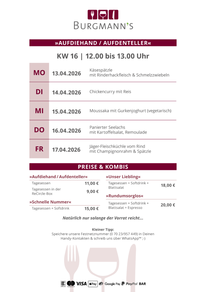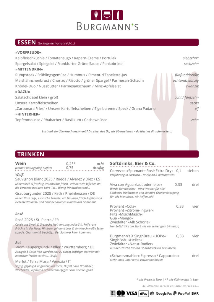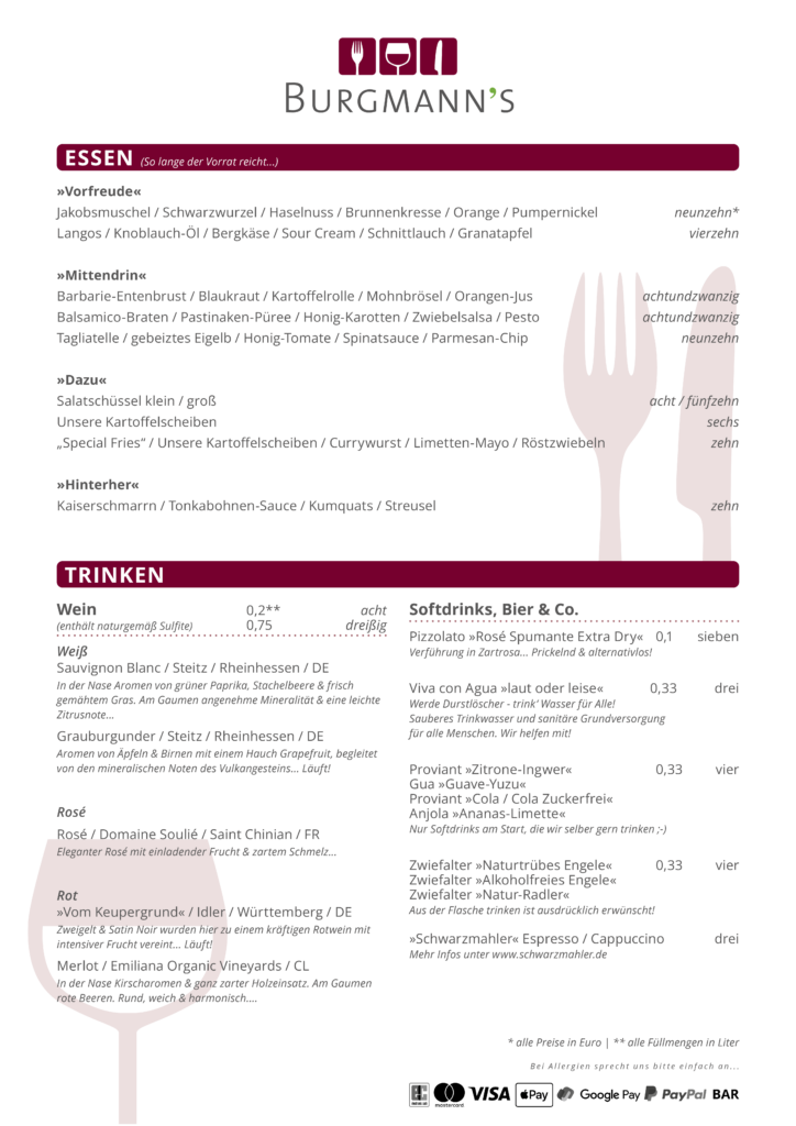 Seit dem ersten Tag setzen wir im Burgmann’s auf frische, abwechslungsreiche, nachhaltige Küche.