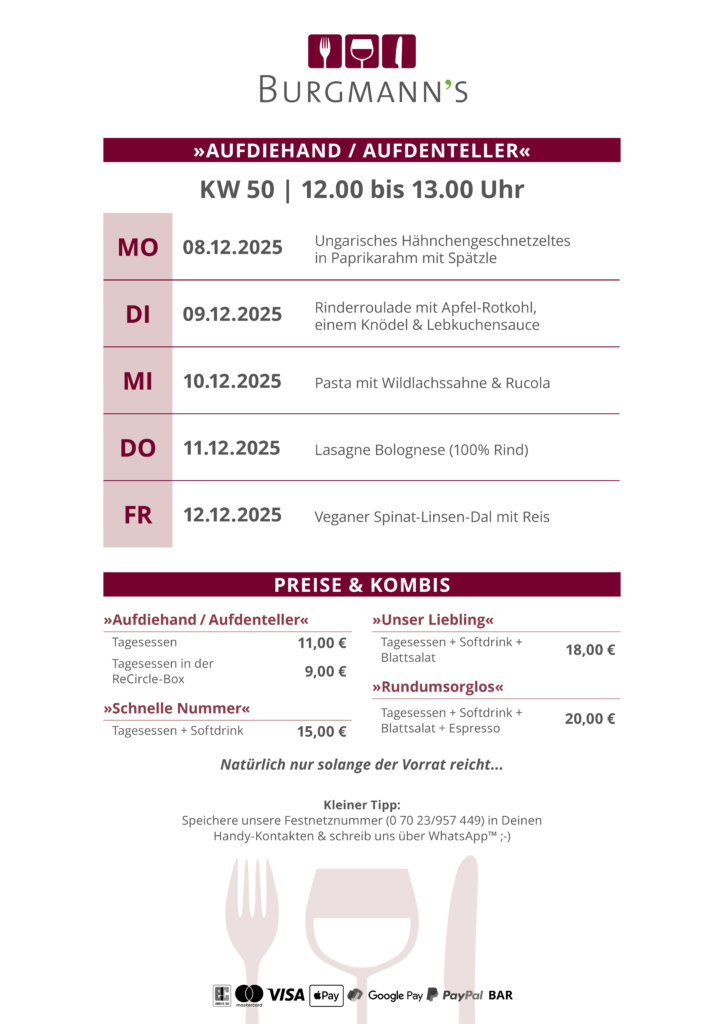Save the date! Am 23.12.25 von 18:00 – 22:00 Uhr bei uns im Burgmann’s ❤️